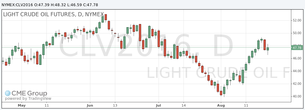Стоимость октябрьских фьючерсов на американскую легкую нефть марки WTI (Light Sweet Crude Oil) выросла до 48,32 доллара за баррель.