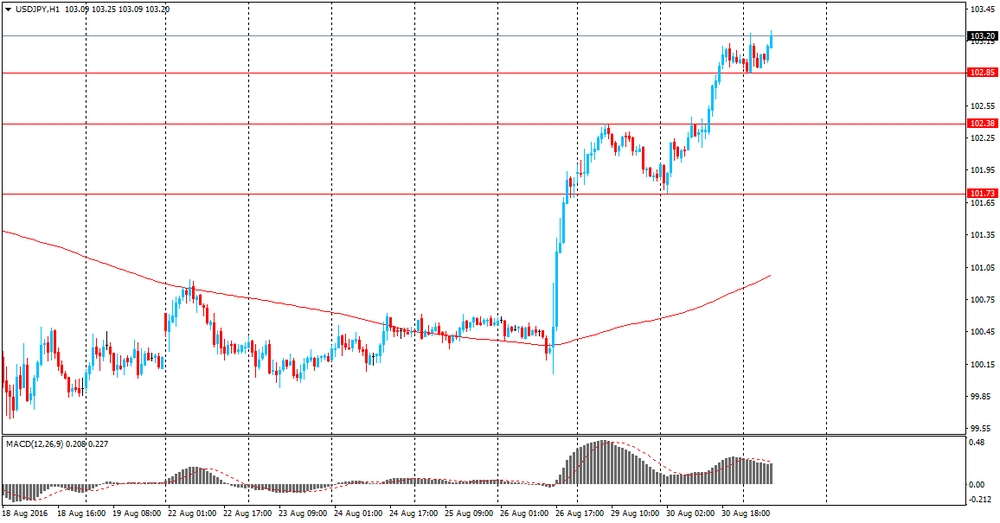Доллар США вырос против иены, обновив вчерашний максимум, достигнув Y103.25. Поддержку паре USD/JPY оказывают недавние комментарии чиновников ФРС, усилившие вероятность повышения ставки. В минувшую пятницу председатель ФРС Йеллен заявила, что основания для повышения ставки выросли в последние месяцы благодаря улучшению ситуации на рынке труда и ожиданиям стабильного экономического роста. Однако, она не указала, когда ФРС намерена действовать, заявив, что повышение ставки будет зависеть от данных. Вместе с тем, вчера замглавы ФРС Фишер также подтвердил, что темпы повышения ставок будут зависеть исключительно от ситуации в экономике. "Не думаю, что в то время, когда мы начнем повышать ставки, мы будем знать, будет ли это одно повышение или несколько. Это полностью зависит от того, что будет происходить в экономике", - сказал Фишер. Согласно рынку фьючерсов, вероятность повышения ставки в сентябре составляет 24%. Тем временем, шансы на увеличение ставки в декабре оцениваются сейчас в 52,5%.