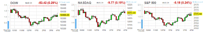 Основные фондовые индексы Уолл-Стрит продемонстрировали снижение в последний торговый день лета на фоне усилившегося падения цен на нефть.