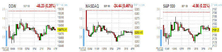 Основные фондовые индексы США снизились в четверг на фоне падения акций компании Apple на следующий день после того, как технический гигант представил новый iPhone 7, которому не удалось произвести впечатление на Уолл-стрит. Инвесторы также оценивали итоги заседания ЕЦБ и комментарии главы европейского центробанка Марио Драги.