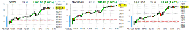Основные фондовые индексы США выросли после того, как чиновники ФРС в менее агрессивном тоне прокомментировали возможность повышения процентных ставок.