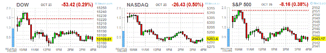Неутешительные корпоративные результаты нескольких "тяжеловесов" отправили основные фондовые индексы Уолл-стрит в отрицательную зону, в то время как инвесторы искали подсказки, касающиеся сроков следующего повышения процентных ставок в преддверии заседания ФРС на следующей неделе.