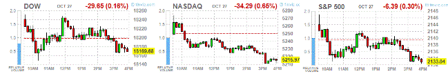 Основные фондовые индексы США продемонстрировали небольшое снижение, так как слабые результаты нескольких компаний промышленного и потребительского сектора затмили доходы от роста акций здравоохранения.