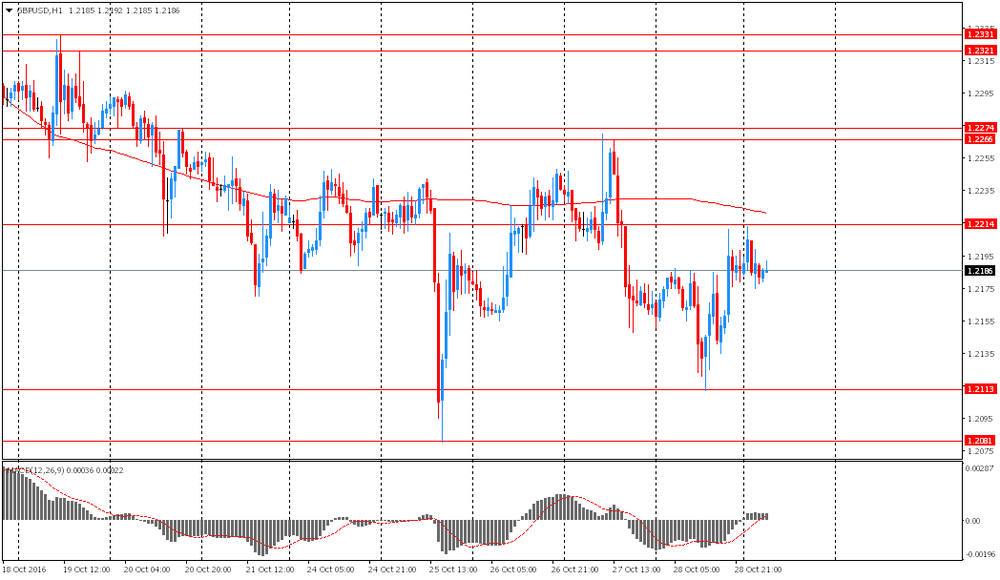 В 07:00 GMT Германия сообщит об изменении объема розничной торговли за сентябрь. В 09:30 GMT Британия заявит об объеме чистых займов частным лицам и количестве одобренных заявлений на получение ипотечного кредита за сентябрь. В 10:00 GMT еврозона выпустит индекс потребительских цен за октябрь, а также отчитается по изменению объема ВВП за 3 квартал. В 12:30 GMT Канада представит индекс цен на сырье и индекс цен производителей за сентябрь. Также в это время США опубликует основной индекс расходов на личное потребление за сентябрь, и заявит об изменении уровня расходов/доходов населения за сентябрь. В 13:45 GMT США выпустит индекс менеджеров по закупкам Чикаго за октябрь. В 22:30 GMT Австралия представит индекс активности в производственном секторе от AiG за октябрь.