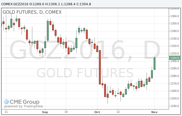 Стоимость декабрьского фьючерса на золото на COMEX выросла до $1306,1 за унцию.