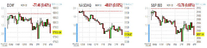 Основные фондовые индексы упали в среду, индекс S&P 500 снизился седьмой день подряд на фоне слабых данных о занятости и снижения цен на нефть, инвесторы ждали итогов заседания Федрезерва, однако основным фактором риска в глазах рынка по-прежнему остаются президентские выборы США.