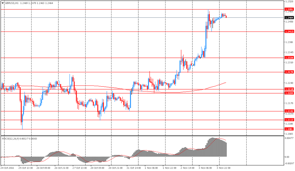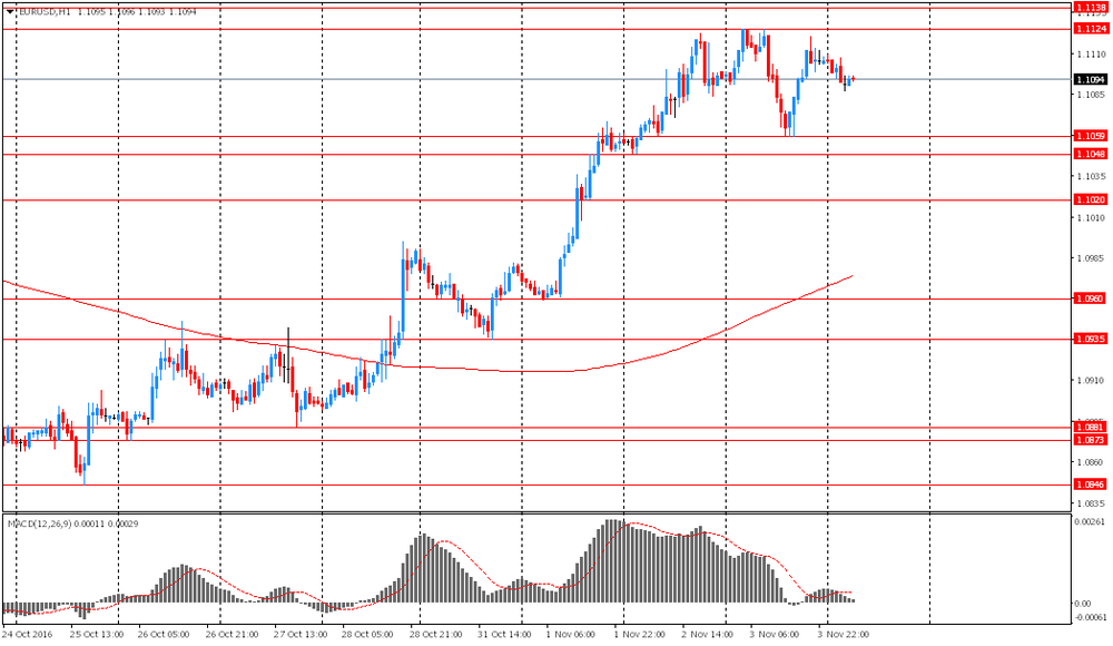 Сегодня рынки ждут публикацию отчета по занятости вне сельского хозяйства США. Эта новость станет ключевой для определения вероятности повышения процентных ставок ФРС в декабре. По прогнозу экономистов, в октябре количество рабочих мест увеличилось на 175 тыс после роста на 156 тыс в сентябре. Сильные данные повысят вероятность ужесточения денежно-кредитной политики ФРС. В опубликованном в среду заявлении центрального банка сказано, что причины для повышения ставок стали более вескими.