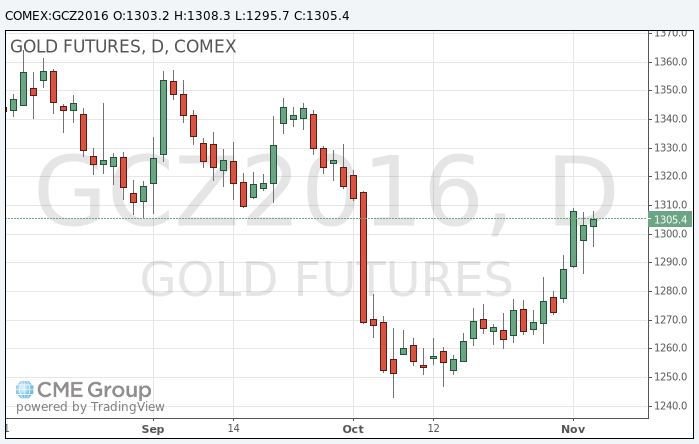 Беспокойство в преддверии финиша президентской кампании в США в последние дни привело к росту цен на золото до месячного максимума, и они, впервые с 4 октября, превысили 1300 долларов за унцию. По мнению аналитиков, рынок золота будет оставаться волатильным до вторника, когда пройдет голосование.