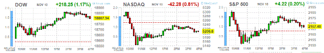 Промышленный индекс Доу-Джонса достиг рекордного внутридневного максимума в четверг, так как инвесторы считают, что избранный президент Дональд Трамп отойдет от политики жесткой экономии. В то же время, Nasdaq упал на фоне снижения тяжеловесов Apple и Amazon, так как инвесторы вкладывали деньги в другие сектора, которые могут извлечь пользу от победы Дональда Трампа на выборах США.