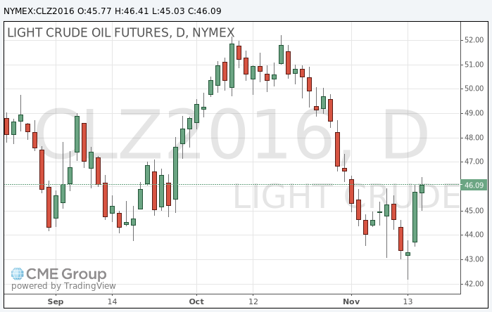 Стоимость декабрьских фьючерсов на американскую легкую нефть марки WTI (Light Sweet Crude Oil) выросла до 46,41 доллара за баррель на Нью-йоркской товарно-сырьевой бирже.