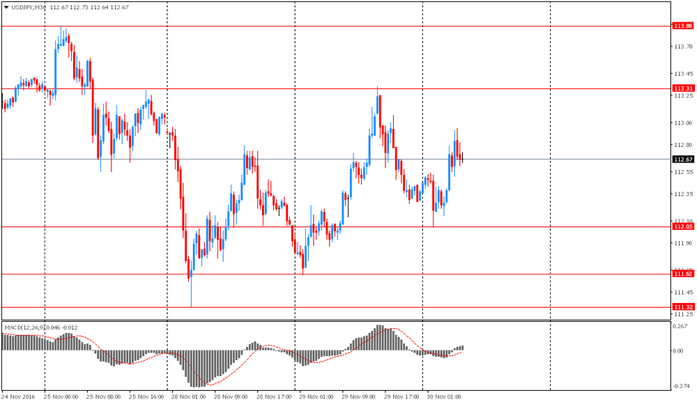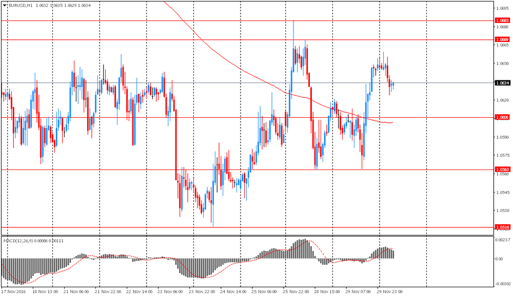 В 07:00 GMT Швейцария выпустит индикатор потребительской активности от UBS за октябрь, а в 08:00 GMT - индекс ведущих экономических индикаторов от KOF за ноябрь. В 08:55 GMT Германия заявит об изменении числа безработных и уровне безработицы за ноябрь. В 10:00 GMT еврозона опубликует индекс потребительских цен за ноябрь. В 12:30 GMT глава ЕЦБ Драги выступит с речью. В 13:15 GMT США отчитается по изменению числа занятых от ADP за ноябрь. В 13:30 GMT Канада заявит об изменении объема ВВП за сентябрь и 3-й квартал, а также выпустит индекс цен на сырье и индекс цен производителей за октябрь. Также в это время США представит базовый индекс расходов на личное потребление за октябрь, и сообщит об изменении объема личных расходов и доходов за октябрь. В 14:45 GMT США опубликует индекс менеджеров по закупкам Чикаго за ноябрь. В 15:00 GMT США отчитается по изменению объема незавершенных сделок по продаже жилья за октябрь. В 15:30 GMT Минэнерго США заявит об изменении запасов нефти. В 19:00 GMT в США состоится публикация экономического обзора ФРС по регионам «Бежевая Книга». В 22:30 GMT Австралия выпустит индекс активности в производственном секторе от AiG за ноябрь. В 23:50 GMT Япония заявит об изменении объема капитальных расходов за 3-й квартал.
