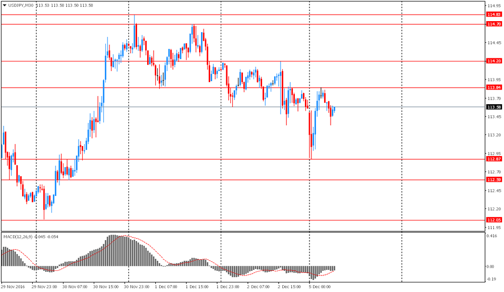 USD/JPY: в ходе азиатской сессии пара торговалась в диапазоне Y112.85-85. На текущий момент пара приближается сильному сопротивлению, представляющим собой минимумы 2015 года. Коррекция пары с текущих уровней является крайне вероятной. Ближайшей целью коррекции является область Y109.60 (38.2% FIBO роста от минимумов 9 ноября).