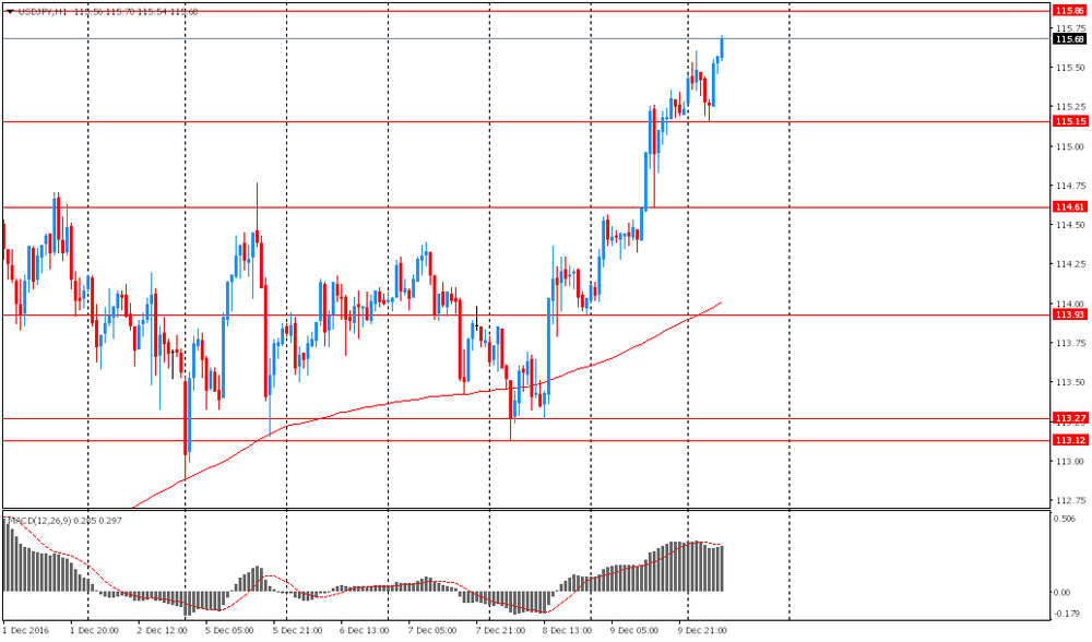 Новая неделя началась резким ростом цен на нефть, что стало результатом о присоединении к соглашению ОПЕК, направленном на ограничение объема добычи нефти, стран, не входящих в данную организацию. Неделю назад страны ОПЕК впервые за восемь лет договорились сократить объем добычи 1,2 млн. баррелей в сутки до уровня 32,5 млн. баррелей. В субботу данное решение поддержали 11, не входящих в картель, в том числе и Россия. За счет этого ежедневный объем добычи сократится еще на 0,56 млн. баррелей в сутки. Достигнутые договоренности вступают в силу с 1 января 2017 года и буду действовать до мая. Но есть большая вероятность продления срока его действия и на второе полугодие следующего года. На фоне поступивших сообщений стоимость нефтяных фьючерсов утром выросла на 5%. Рост цен на нефть оказал поддержку канадскому доллару, который заметно подорожал в начале сессии. Однако скептицизм относительно выполнения достигнутых договоренностей остается, поэтому дальнейший рост цен на нефть может быть проблематичным.