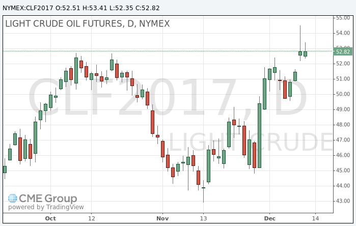 Стоимость январских фьючерсов на американскую легкую нефть марки WTI (Light Sweet Crude Oil) выросла до 53,41 доллара за баррель на Нью-йоркской товарно-сырьевой бирже.