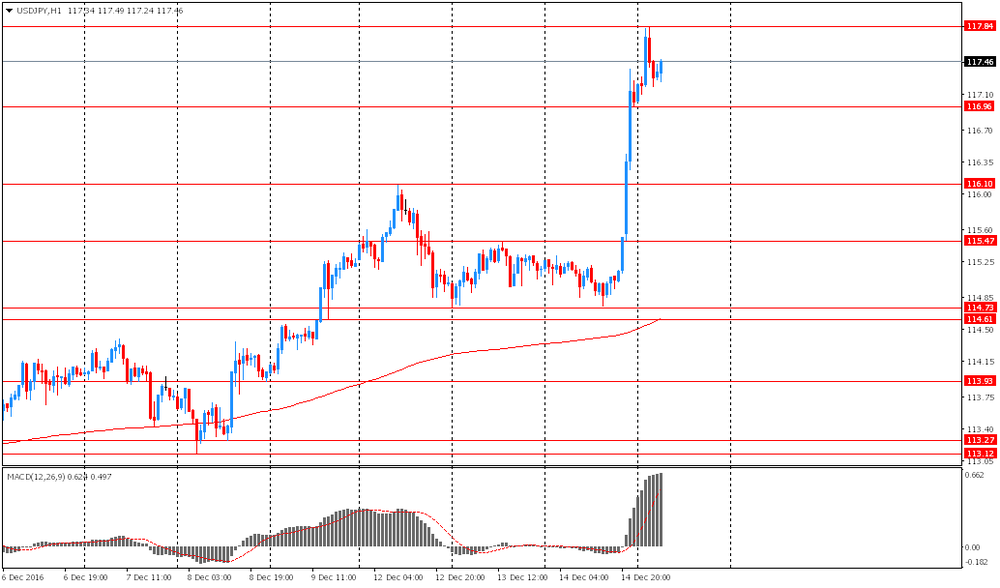 Рынки продолжают взвешивать вчерашнее решение Комитета по открытому рынку (Federal Open Market Committee, FOMC) ФРС. Регулятор ожидаемо повысил целевой диапазон ставки по федеральным фондам на 25 б.п. до 0,50%-0,75%, при этом сопроводительное заявление и комментарии Джанет Йеллен оказались более жесткими, чем ранее. В частности, регулятор сигнализировал о более быстрых темпах ужесточения денежно-кредитной политики в следующем году, чем подразумевалось ранее: на данный момент прогнозируется три повышения ставки на 25 б.п. против двух, ожидавшихся на предыдущих заседаниях. Также были озвучены достаточно оптимистичные комментарии по ситуации в американской экономике. В итоге американский доллар отреагировал резким ростом против других валют. В ближайшем времени доллар продолжит оставаться поддержанным, а участники рынков будут ожидать реализации обещанных новоизбранным президентом США бюджетных и налоговых стимулов.