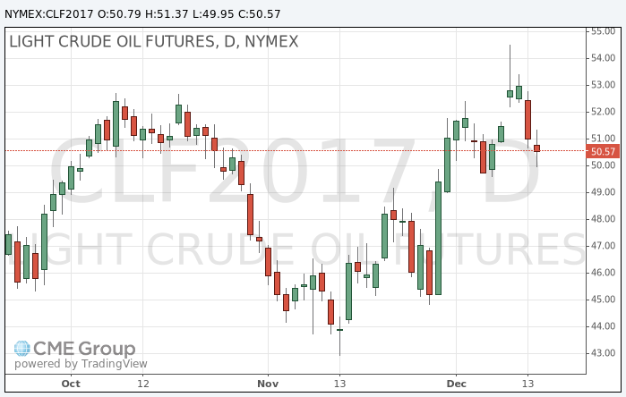 Стоимость январских фьючерсов на американскую легкую нефть марки WTI (Light Sweet Crude Oil) упала до 49,95 доллара за баррель на Нью-йоркской товарно-сырьевой бирже.