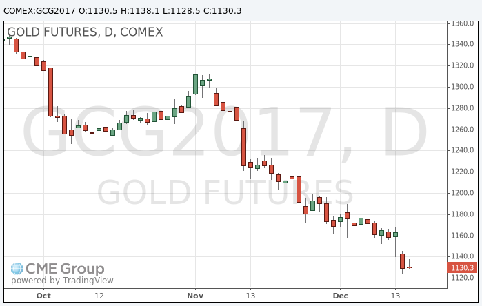 Стоимость февральского фьючерса на золото на COMEX торгуется в диапазон $1128,5 - $1138,1 за унцию.