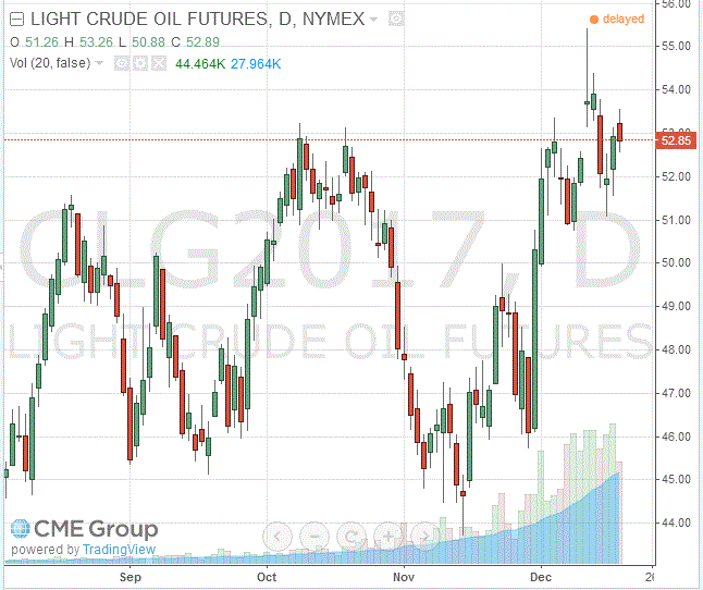Некоторые аналитики ожидают, что рост цен на нефть продолжится в начале 2017 года из-за сделки между Организацией стран-экспортеров нефти и некоторыми другими производителями, которая предполагает сокращение добычи нефти почти на 1,8 млн. баррелей в сутки с января.