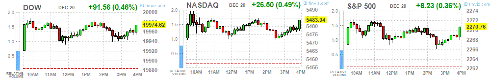 Основные фондовые индексы США выросли во вторник, при этом Dow достиг рекордно высокого уровня на фоне роста Goldman Sachs (GS), который дал самый большой толчок индексу голубых фишек. Рынок спокойно отреагировал на смертоносные нападения в Германии и Турции, а также стрельбу в исламском центре Цюриха в Швейцарии. Торговая активность на рынке низкая и, вероятно, будет оставаться таковой, так как многие участники рынка уходят на каникулы.