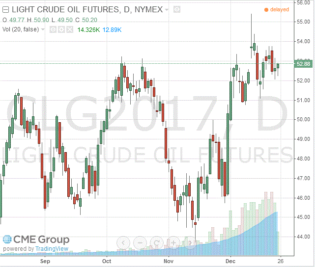 Стоимость февральских фьючерсов на американскую легкую нефть марки WTI (Light Sweet Crude Oil) снизилась до 52,88 доллара за баррель на Нью-йоркской товарно-сырьевой бирже.