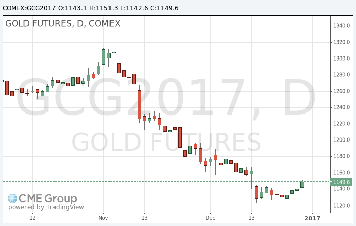 Стоимость февральского фьючерса на золото на COMEX выросла до $1152,0 за унцию.