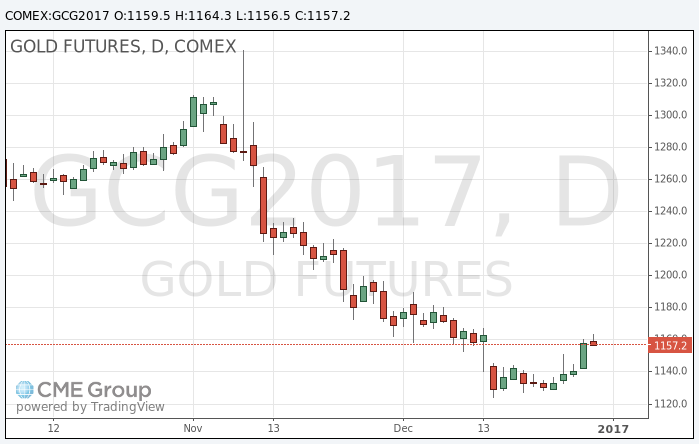 "Снижение, которое золото продемонстрировало в декабре, во многом вызвано надеждами на увеличение инфраструктурных и других расходов при администрации Дональда Трампа. На рынке укрепились ожидания более высоких процентных ставок и роста фондовых индексов в 2017 году", - отмечает Михир Кападиа из Sun Global Investments.