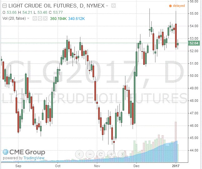 Стоимость февральских фьючерсов на американскую легкую нефть марки WTI (Light Sweet Crude Oil) выросла до 52,64 доллара за баррель на Нью-йоркской товарно-сырьевой бирже.