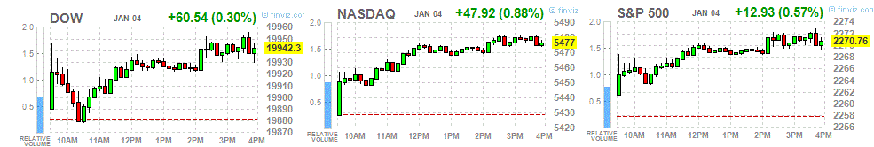 Основные фондовые индексы Wall Street продемонстрировали повышение во второй торговый день нового года, поддерживаемые акциями компаний сектора потребительских товаров, а также ожиданиями инвесторами протоколов декабрьской встречи ФРС.