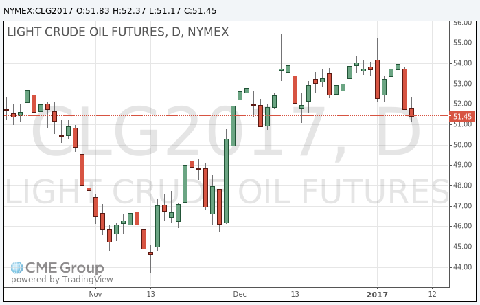 Стоимость февральских фьючерсов на американскую легкую нефть марки WTI (Light Sweet Crude Oil) упала до 51,17 доллара за баррель на Нью-йоркской товарно-сырьевой бирже.