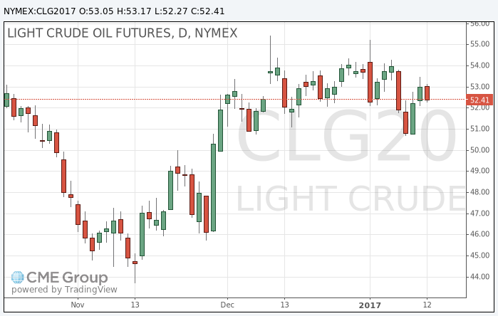 Стоимость февральских фьючерсов на американскую легкую нефть марки WTI (Light Sweet Crude Oil) упала до 52,27 доллара за баррель на Нью-йоркской товарно-сырьевой бирже.