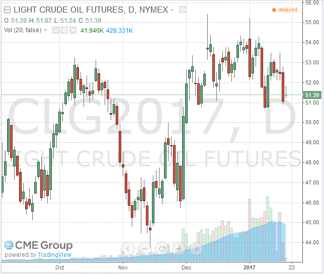 Стоимость февральских фьючерсов на американскую легкую нефть марки WTI (Light Sweet Crude Oil) выросла до 51,39 доллара за баррель на Нью-йоркской товарно-сырьевой бирже.