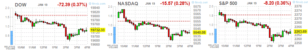 Основные фондовые индексы США немного снизились, при этом Dow зафиксировал свое пятое сессионное падение подряд, поскольку инвесторы оставались в стороне от рискованных сделок перед присягой Дональда Трампа в качестве президента в пятницу.