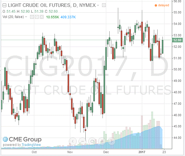 Стоимость февральских фьючерсов на американскую легкую нефть марки WTI (Light Sweet Crude Oil) выросла до 52,60 доллара за баррель на Нью-йоркской товарно-сырьевой бирже.