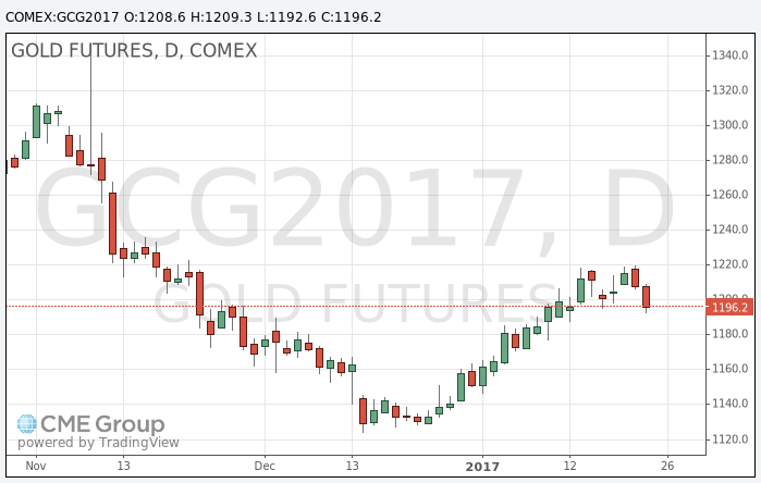 Стоимость февральского фьючерса на золото на COMEX упала до $1192,6 за унцию.