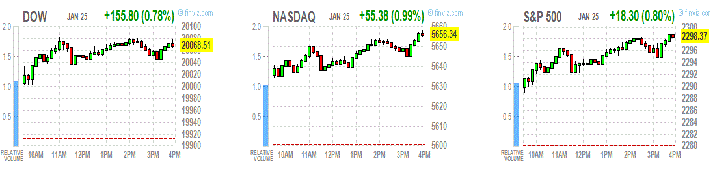 Основные фондовые индексы США выросли в среду почти на процент, индекс Dow впервые в истории преодолел оценку 20000, на фоне сильных квартальных результатов и инициатив президента Дональда Трампа.