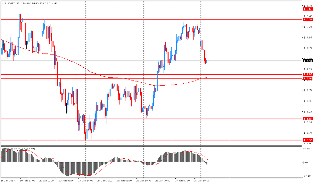 USD/JPY: в ходе торгов азиатской сессии пара немного снизилась к Y114.25. Тем не менее, с 24 января по паре наблюдается устойчивый рост, который ломает нисходящий тренд первой половины января. Сейчас можно присматриваться к покупкам особенно после закрепления выше важного уровня сопротивления Y115.40-60.