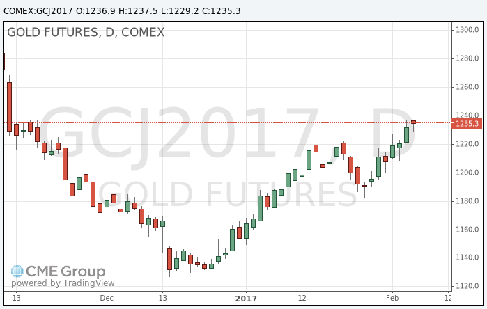 В понедельник цены на желтый металл достигли $1237,50 - максимальное значение, которое не наблюдалось с 11 ноября. Инвесторы предпочли выбрать безопасный актив на фоне растущих политических рисков по всему миру.