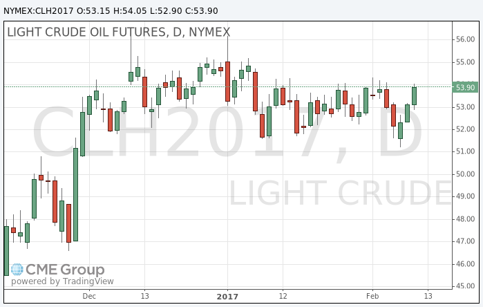 Стоимость мартовских фьючерсов на американскую легкую нефть марки WTI (Light Sweet Crude Oil) выросла до 54,05 доллара за баррель на Нью-йоркской товарно-сырьевой бирже.