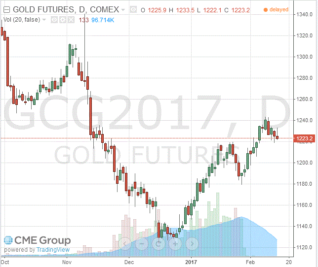 Что касается выступления Йеллен, она сказала, что центральный банк может рассмотреть вопрос о повышении процентных ставок на ближайших заседаниях. Вместе с тем она подчеркнула, что повышение ставки будет постепенным, так как темпы роста ВВП США по-прежнему умеренные. Кроме того, Йеллен заявила, что безработица "приблизилась" к такому уровню, который ФРС рассматривает как "полную занятость". Она также сослалась на недавний рост зарплаты и заявила, что это стало дальнейшим указанием на то, что ситуация на рынке труда улучшается. Глава ФРС подчеркнула важность повышения долгосрочных темпов роста экономики и улучшение жизненных стандартов при помощи политики, направленной на повышение производительности. Она также выразила надежду на то, что изменения в налогово-бюджетной политике будут соответствовать направлению бюджета США на приемлемую траекторию. Однако, Йеллен заявила, что существует высокая неопределенность в отношении мер в бюджетной и налоговой политике, принимаемых новым правительством. В целом речь Йеллен указала, что вопрос о повышении ставки будет подниматься на каждом из последующих заседаний. Согласно рынку фьючерсов, сейчас вероятность повышения ставки ФРС на мартовском заседании составляет 17,7% по сравнению с 13,3% днем ранее. Напомним, золото обычно дешевеет при росте ставок, поскольку оно не приносит процентного дохода и становится в этом случае менее востребованным по сравнению с активами, такой доход приносящими.