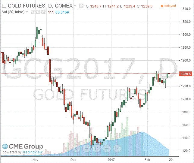 Внимание инвесторов также переключается на протокол последнего заседания ФРС, который будет опубликован 22 февраля. По мнению экономистов, в протоколе могут содержаться новые подсказки касательно перспектив повышения процентной ставки ФРС. Напомним, ранее на этой неделе глава ФРС Джанет Йеллен заявила о возможности повышения ставки уже на ближайшем заседании. Согласно рынку фьючерсов, сейчас вероятность повышения ставки ФРС на мартовском заседании составляет 17,7% по сравнению с 22,1% днем ранее. Напомним, золото обычно дешевеет при росте ставок, поскольку оно не приносит процентного дохода и становится в этом случае менее востребованным по сравнению с активами, такой доход приносящими.