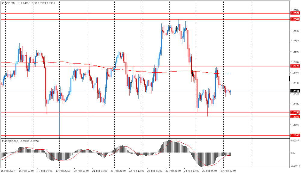 GBP/USD: в ходе азиатской сессии пара торговалась в диапазоне $1.2420-45. Уже вторую неделю пара продолжает торговаться во флете. Ближайшей сильной поддержкой может выступить нижняя граница этого флета - $1.2380.