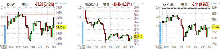 Основные фондовые индексы США закрылись в умеренном минусе во вторник на фоне снижения секторов услуг и конгломератов. Инвесторы ожидали первую речь президента США Дональда Трампа на совместном заседании обеих палат Конгресса.