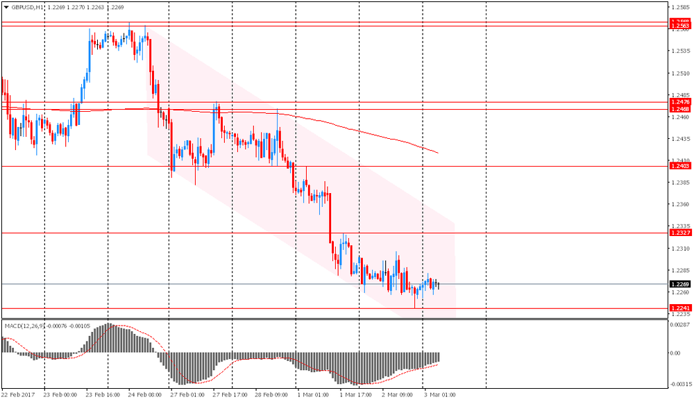 GBP/USD: в ходе азиатской сессии пара торговалась в диапазоне $1.2250-80. Фунт с 24 февраля снижается против доллара и торгуется в нисходящем канале. Лучшей стратегией в таких условиях является открытие новых продаж. Ближайшим сопротивлением может выступить максимум американской сессии 1 марта ($1.2325).