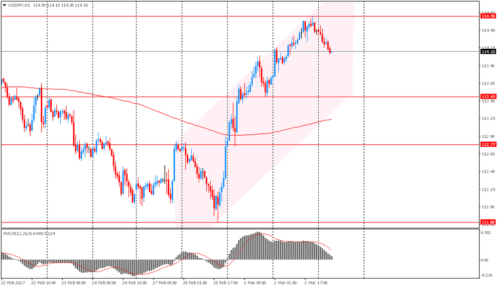 USD/JPY: в ходе торгов азиатской сессии пара упала к Y114.05. Пара начала корректироваться после своего стремительного роста накануне. Это подтверждается медвежьей дивергенцией на часовом графике. Тем не менее, пара остается в восходящем канале и лучшей стратегией станет открытие новых покупок на окончание коррекции. Ближайшей поддержкой по паре выступает минимум американской сессии 1 марта (Y113.45).