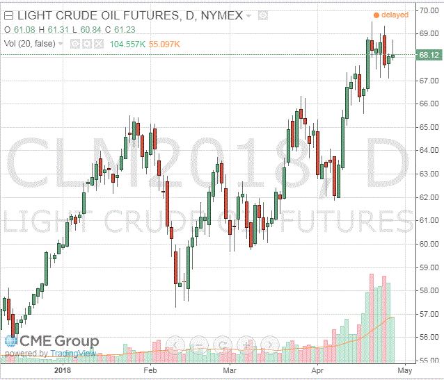Падение производства Венесуэлы и надвигающиеся санкции США против Ирана отмечаются наряду с сильным спросом, прежде всего в Азии, крупнейшем в мире регионе-потребителе нефти. Однако не все рыночные индикаторы указывают на более жесткие поставки. Запасы сырой нефти в США выросли на 2,2 млн. баррелей за неделю по 20 апреля, до 429,74 млн. баррелей. Добыча нефти в США выросла на 46 000 баррелей в день на предыдущей неделе, до 10,59 млн. баррелей в сутки.