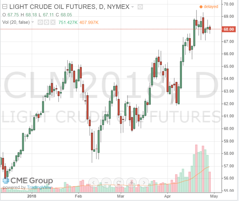 Стоимость июньских фьючерсов на американскую легкую нефть марки WTI (Light Sweet Crude Oil) упала до 68,00 доллара за баррель на Нью-йоркской товарно-сырьевой бирже.