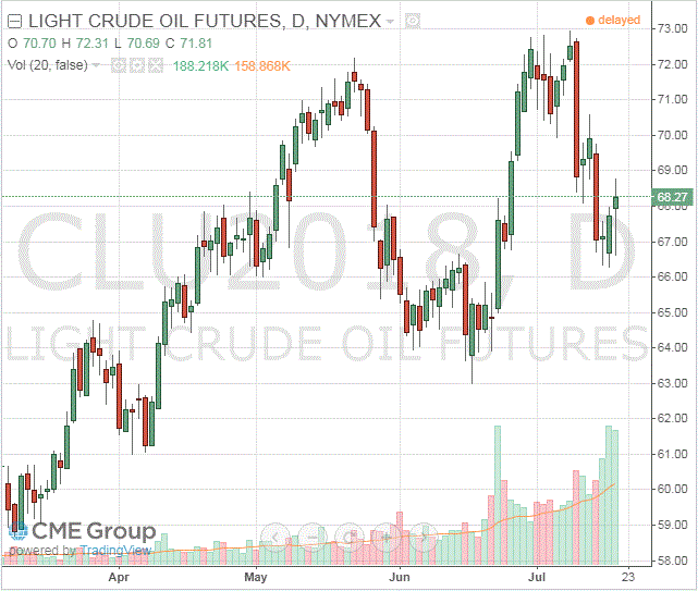 Стоимость сентябрьских фьючерсов на американскую легкую нефть марки WTI (Light Sweet Crude Oil) выросла до 68,27 доллара за баррель на Нью-йоркской товарно-сырьевой бирже.