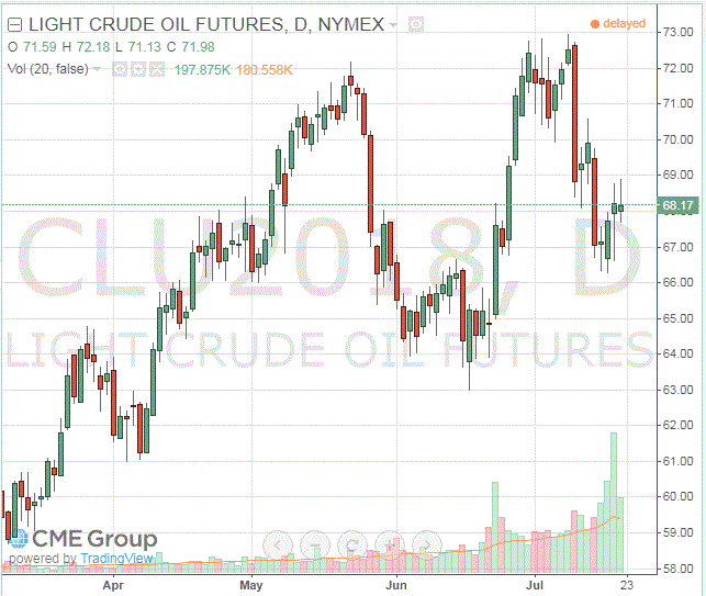 Стоимость сентябрьских фьючерсов на американскую легкую нефть марки WTI (Light Sweet Crude Oil) выросла до 68,17 доллара за баррель на Нью-йоркской товарно-сырьевой бирже.