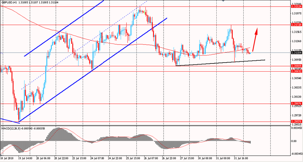 Пара GBP/USD сегодня утром торговалась в диапазоне $1.3105-10. Уже три дня подряд пара торгуется в узком диапазоне, без существенных изменений, и закрывает дни около цен открытия. Фунт находится в коррекции после резкого снижения 26 июля. На данный момент пара тестирует на прочность линию скользящей средней MA 200 H1. Пока пара находится в данной консолидации можно присматриваться к покупкам пары, но с короткими целями. Однако, если британская валюта пробьет линию поддержки последних 3-х торговых дней от 27 июля, необходимо будет открывать продажи.