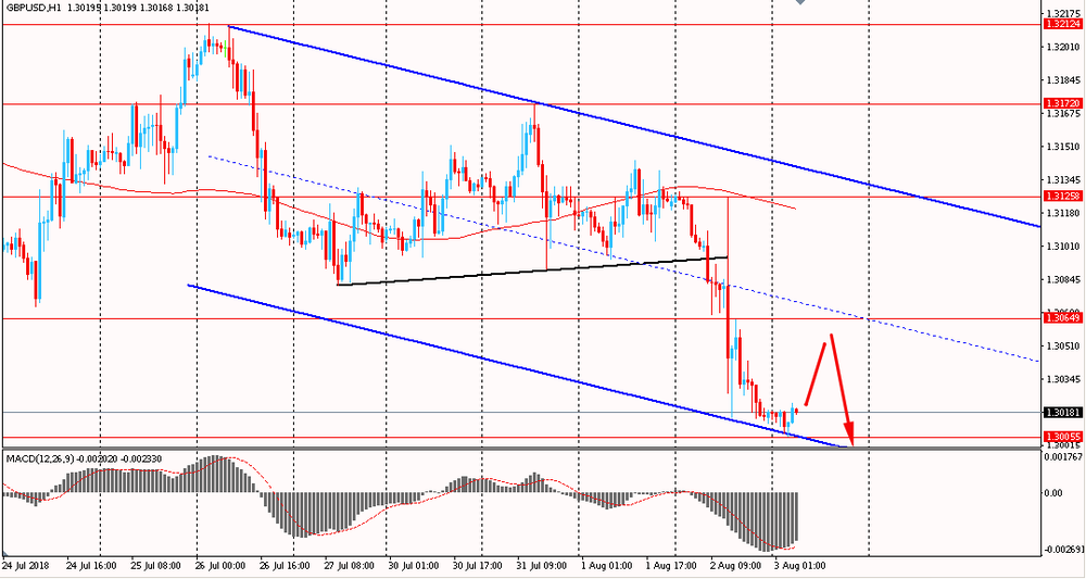 Пара GBP/USD сегодня утром торговалась в диапазоне $1.3005-20, оставаясь около вчерашних минимумов. В четверг пара, оттолкнувшись от линии скользящей средней MA 200 H1, упала и закрыла день существенным спадом. На данный момент фунт находится в глобальном нисходящем канале от 26 июля и после 4-х дней консолидации сформировал новый нисходящий импульс. Пока пара находится в данном тренде можно присматриваться к продажам пары на коррекциях.